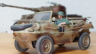 アドルフ タミヤMMシリーズより、ドイツ軍の水陸両用車シュビムワーゲンを作っていきましょう。 ヴァルダ 前回は塗装とマーキングを行った。 今回は兵士の塗装と車体のウェザリングを行い、完成に持ち込む。 レーナ 約1週間で完成ってところかな。 ...