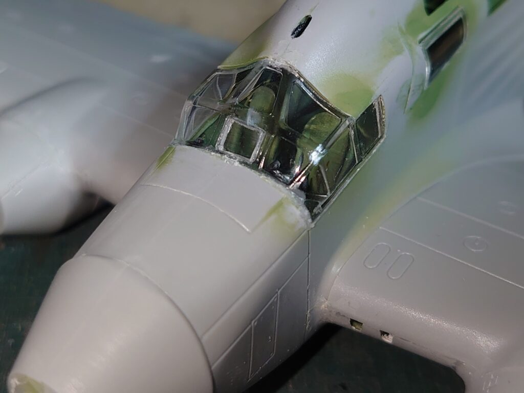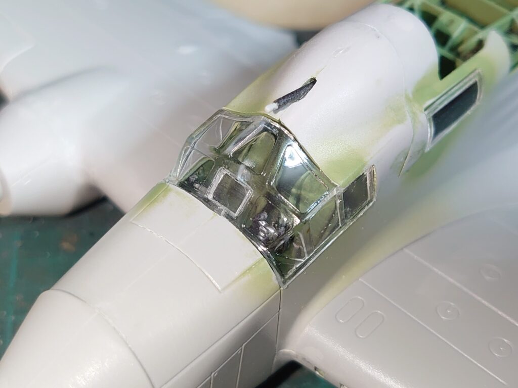 窓枠部分は上から機体色を塗るので、そこまで気にしなくていい。