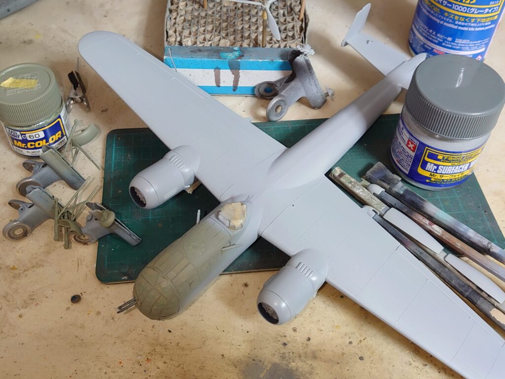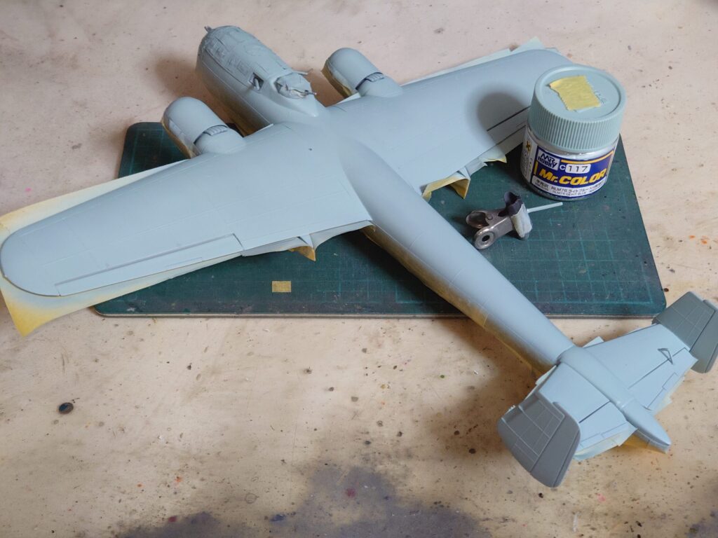 - 主脚・脚カバー内部などの塗装・風防の下塗り→Mr.カラーのRLM02グレー