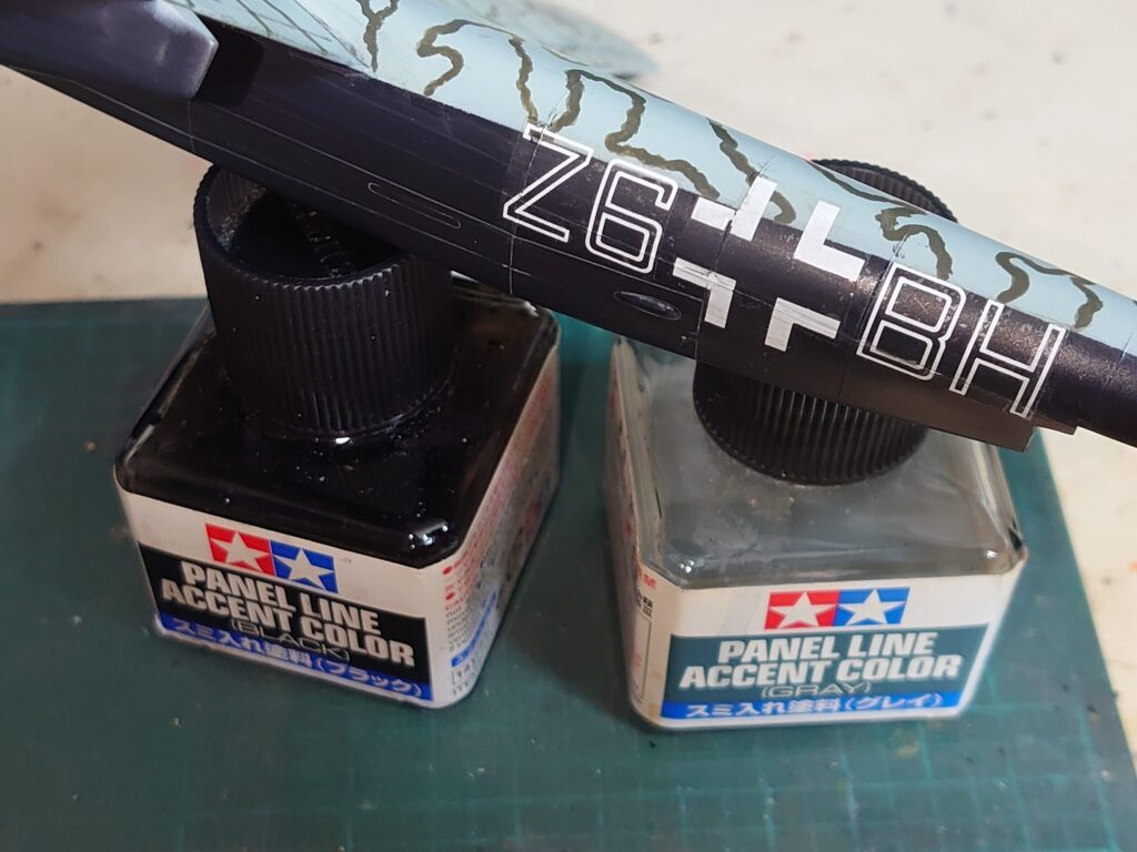 双方タミヤのスミ入れ用塗料で進めていくけど、上面はブラック。