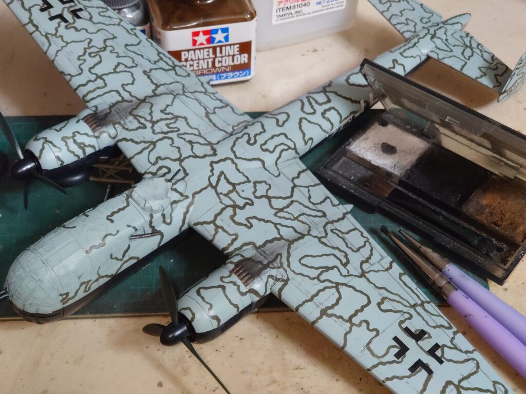 ただ解釈が変わったのか、蛇行迷彩の色がRLM71ダークグリーンではなくRLM74グレーバイオレットの指示になっているようです。