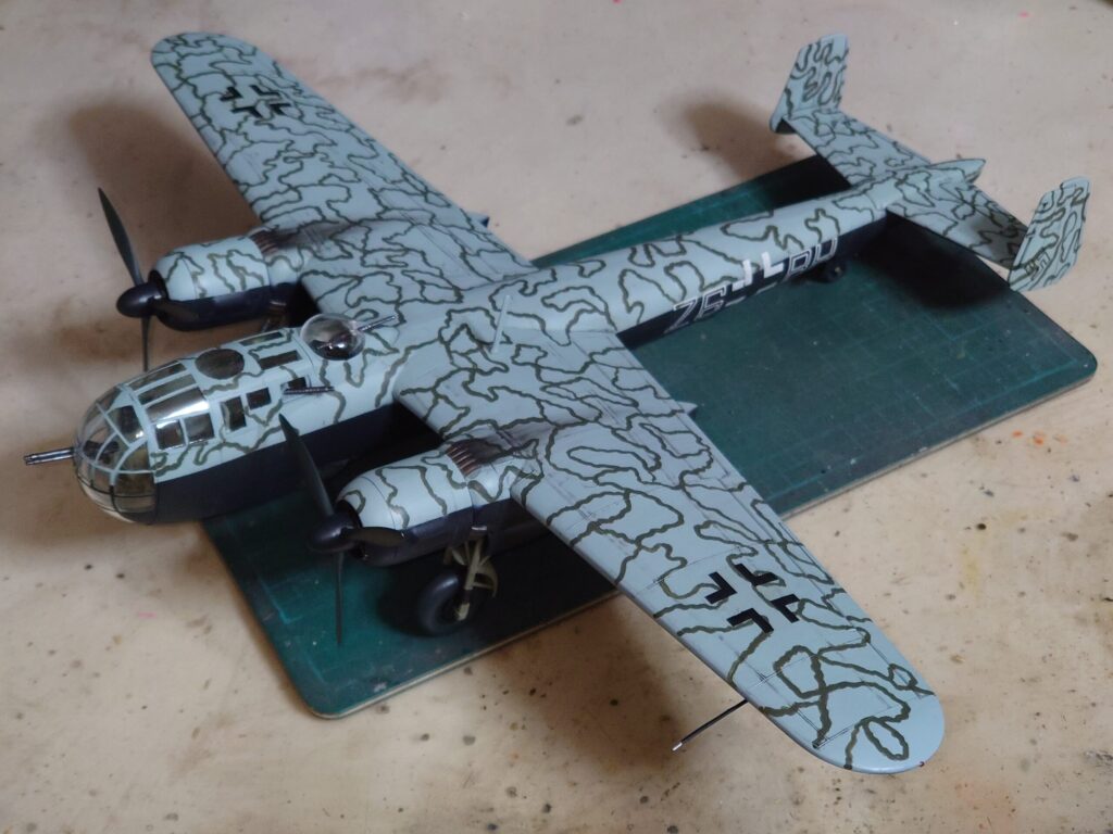 ライトブルーにグレーバイオレットの迷彩となると、イメージは過去に組んだTa154見たいな色合いかと。