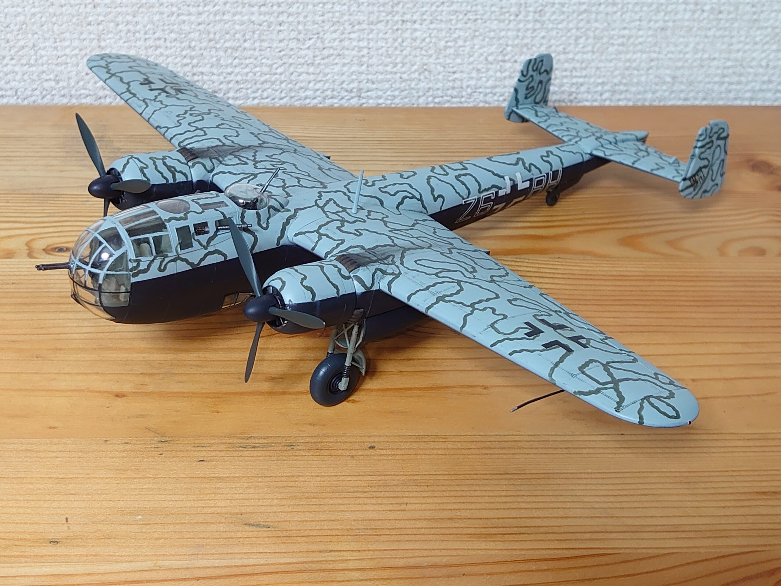 ライトブルーにグレーバイオレットの迷彩となると、イメージは過去に組んだTa154見たいな色合いかと。