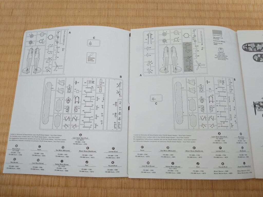 今回は新品の購入品なので、パーツはイタレリお馴染みの注意書きびっしり袋に包まれている。