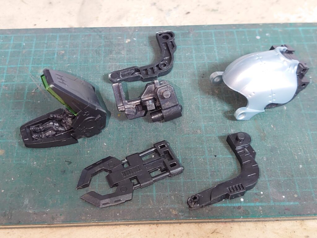 コクピットブロック、フレーム部分、アゴパーツ、頭部外装と揃いました。
