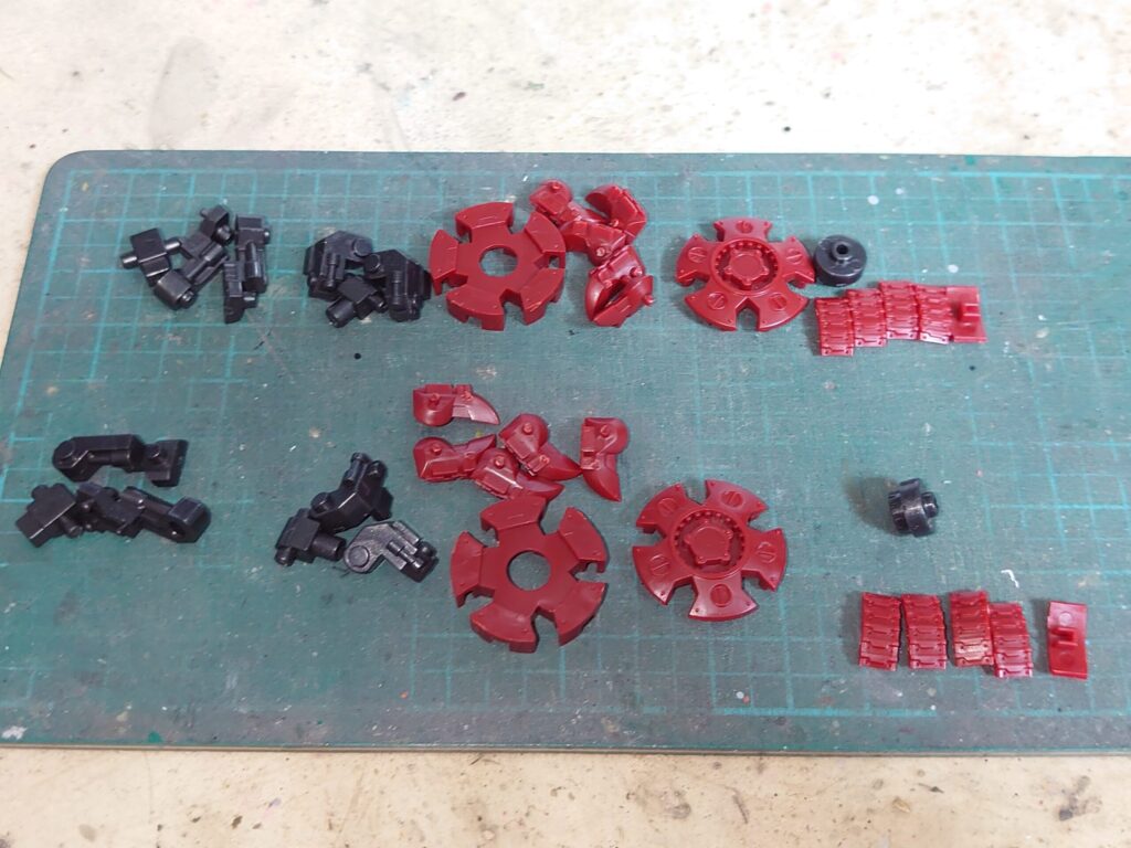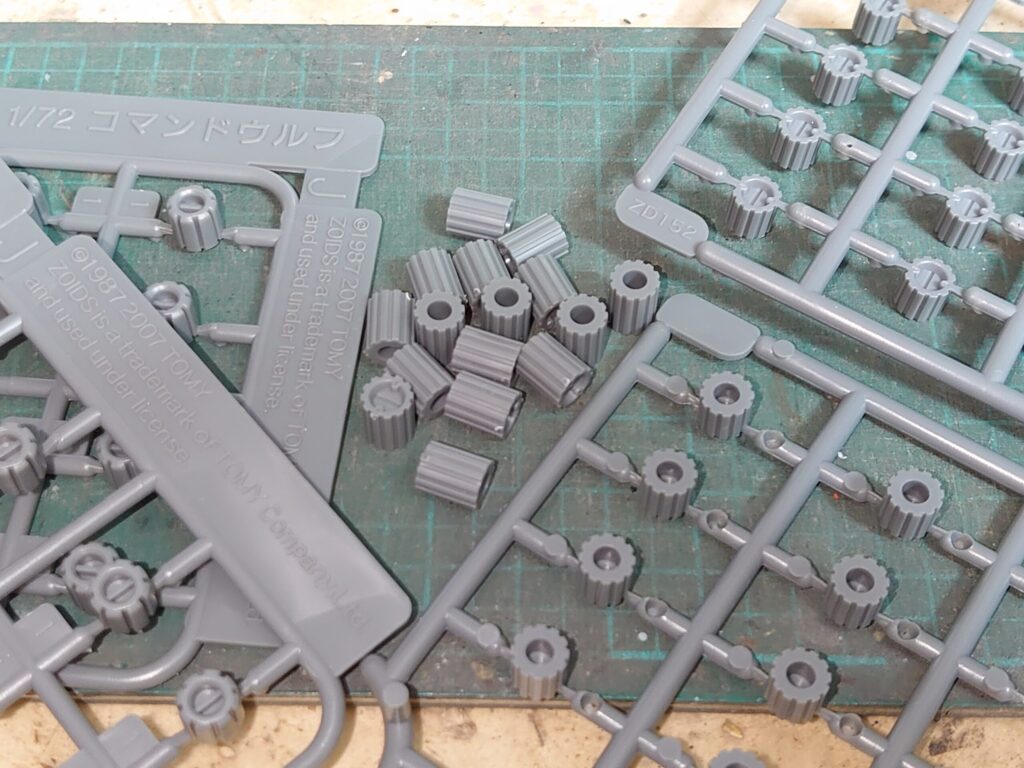 ホイールの接地面に取り付ける履帯パーツはディティール面の向きによって2種類ある。