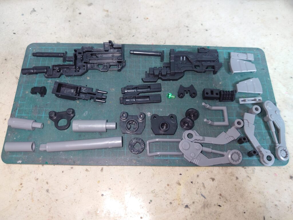 今回は本キットの特徴である武装を組んで、仮組み作業を終了させよう。