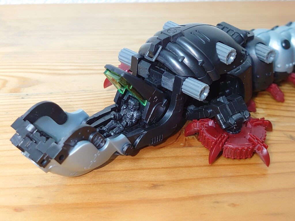 外装とコクピットブロックの二重構造で、パイロットは黒成型となります。