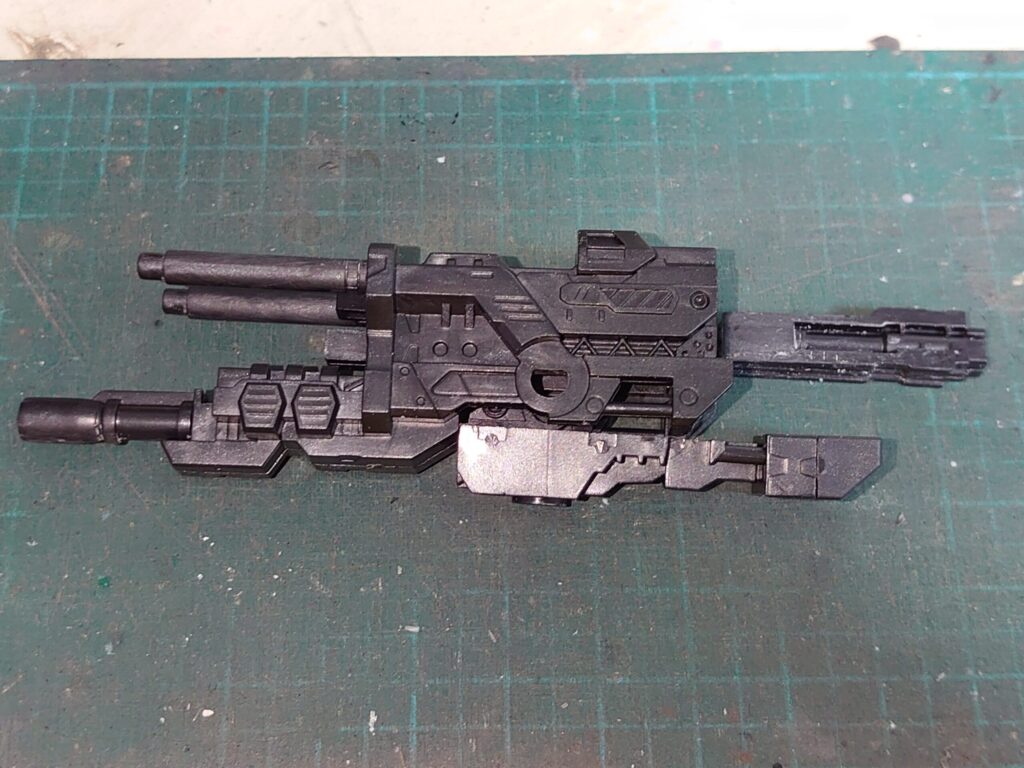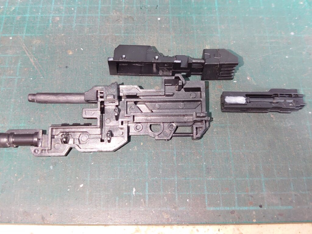 ガンプラもそうだけど、武器の合わせ目が何気に大変なんだよね。