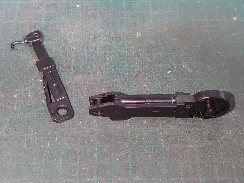 ランナーが横から着脱可能な軸になったことで、外見を損なうことなくクレーンアームを後ハメ加工できるように。