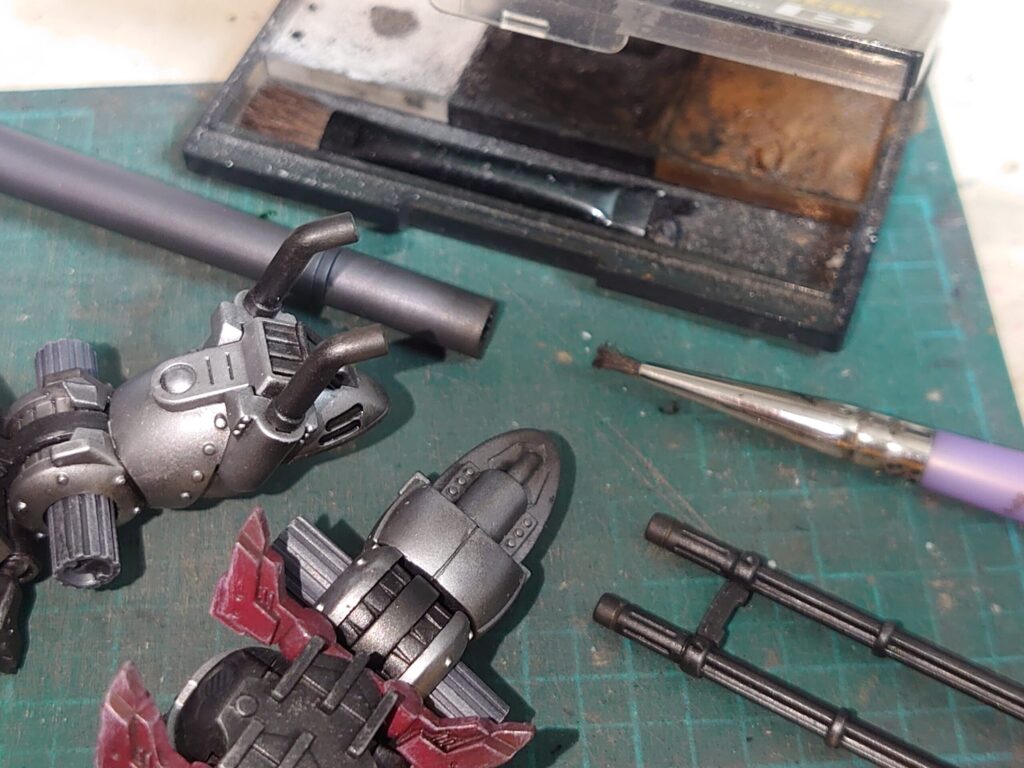 元々黒っぽいガンメタ部分は黒いスス色の効果がわかりにくい。