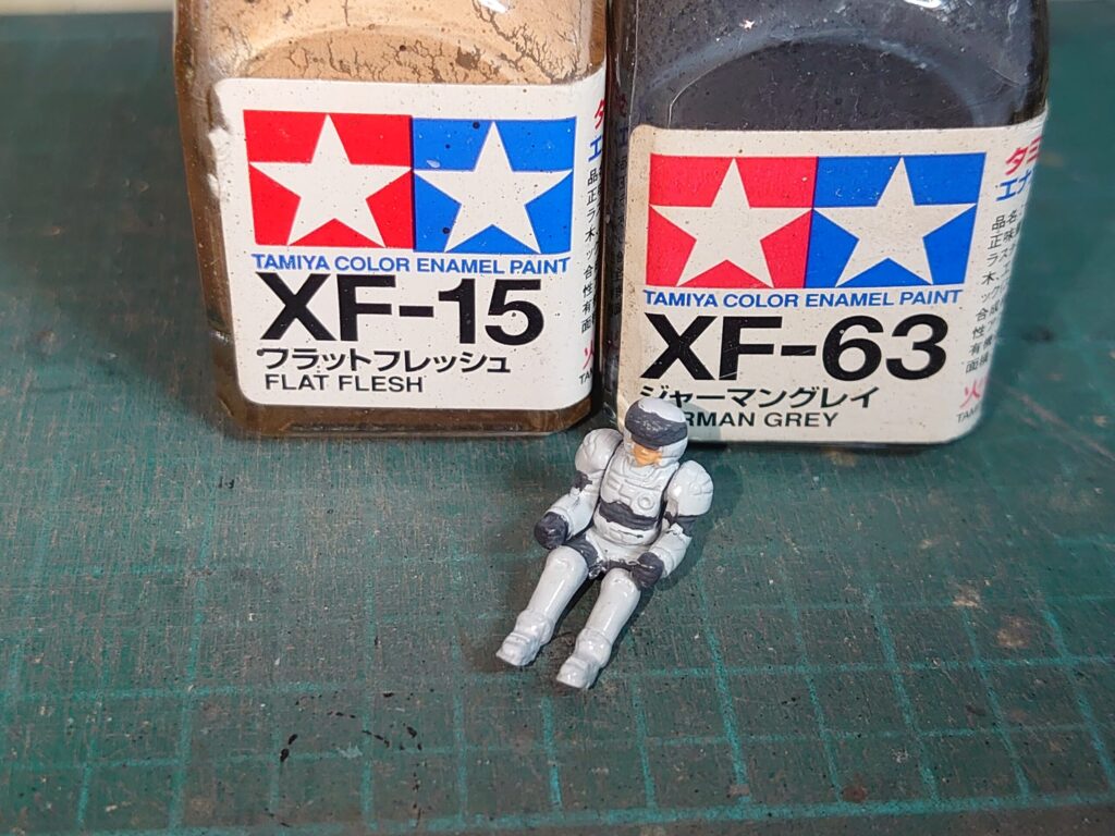 こちらはグランプリホワイトで塗られた本体を、タミヤエナメルのフラットフレッシュとジャーマングレイで塗り分けています。