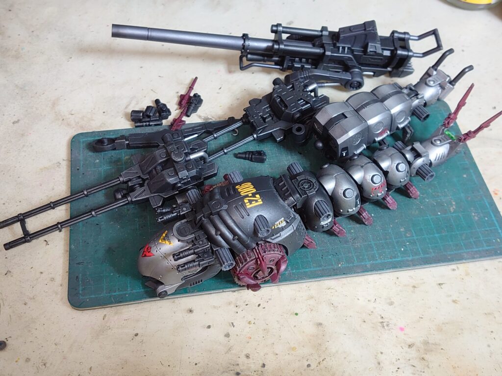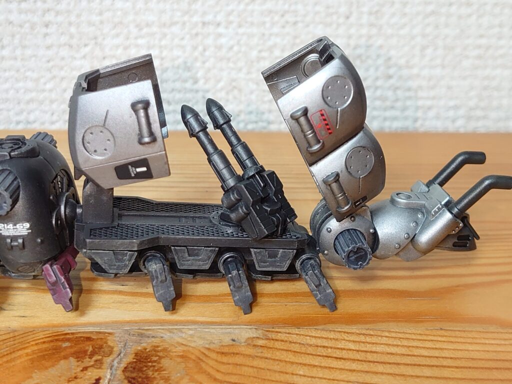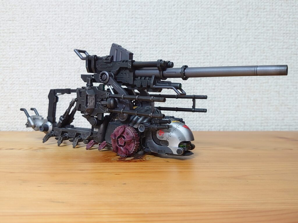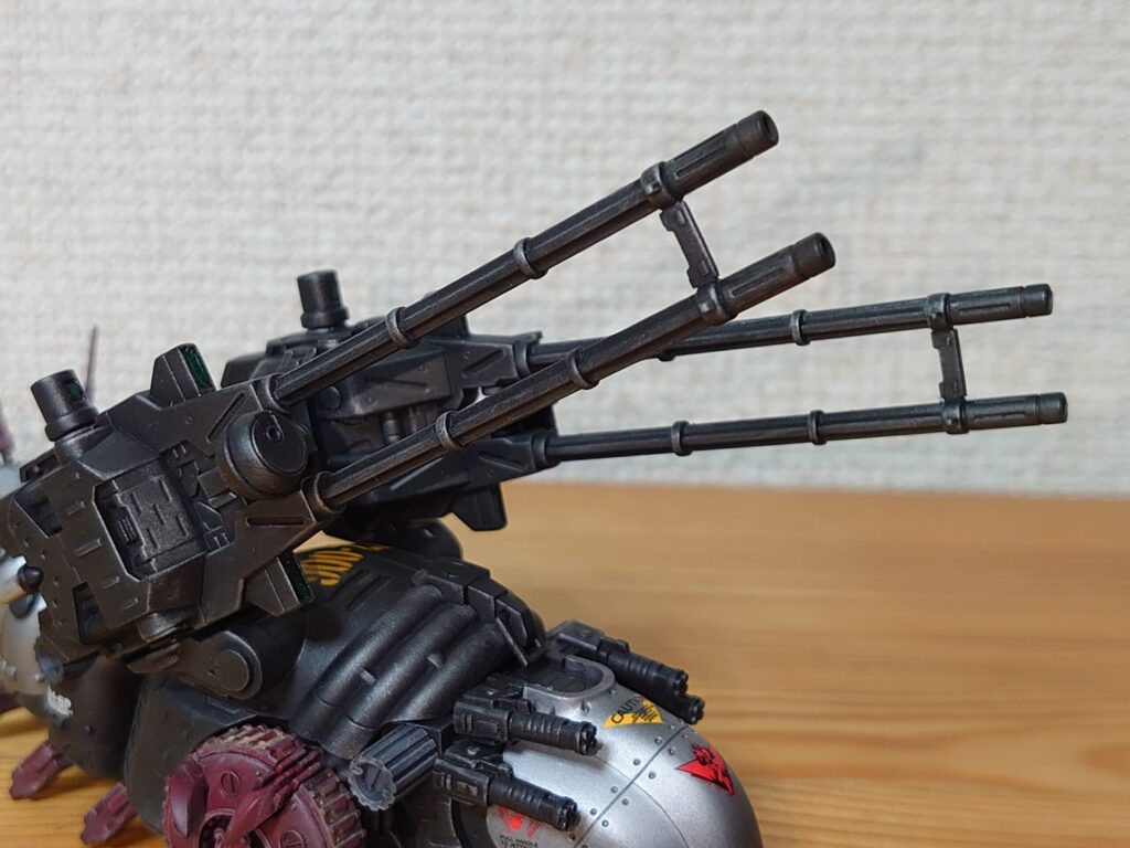 大元の「モルガAA&モルガキャリア」セットでは対空機関砲をカーキとガンメタの塗り分けにする必要があったようだけど、今回はガンメタ単色になっている。