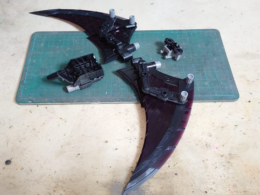 背面の基部パーツで両翼を挟み込むことで、主翼ユニットは完成します。