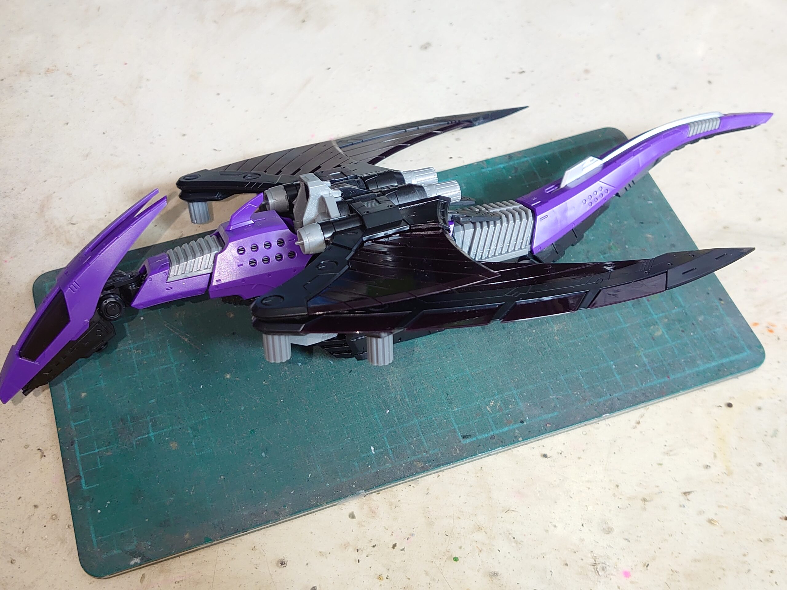 尻尾外装の紫色部分は左右から挟みこむ構造で、真ん中に合わせ目ができる。