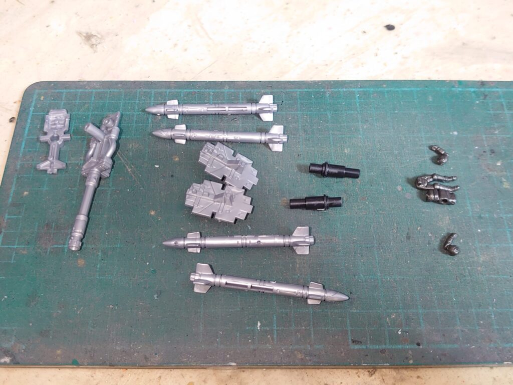 ミサイルは両翼のフレームパーツの軸を差し替える形で取り付けます。