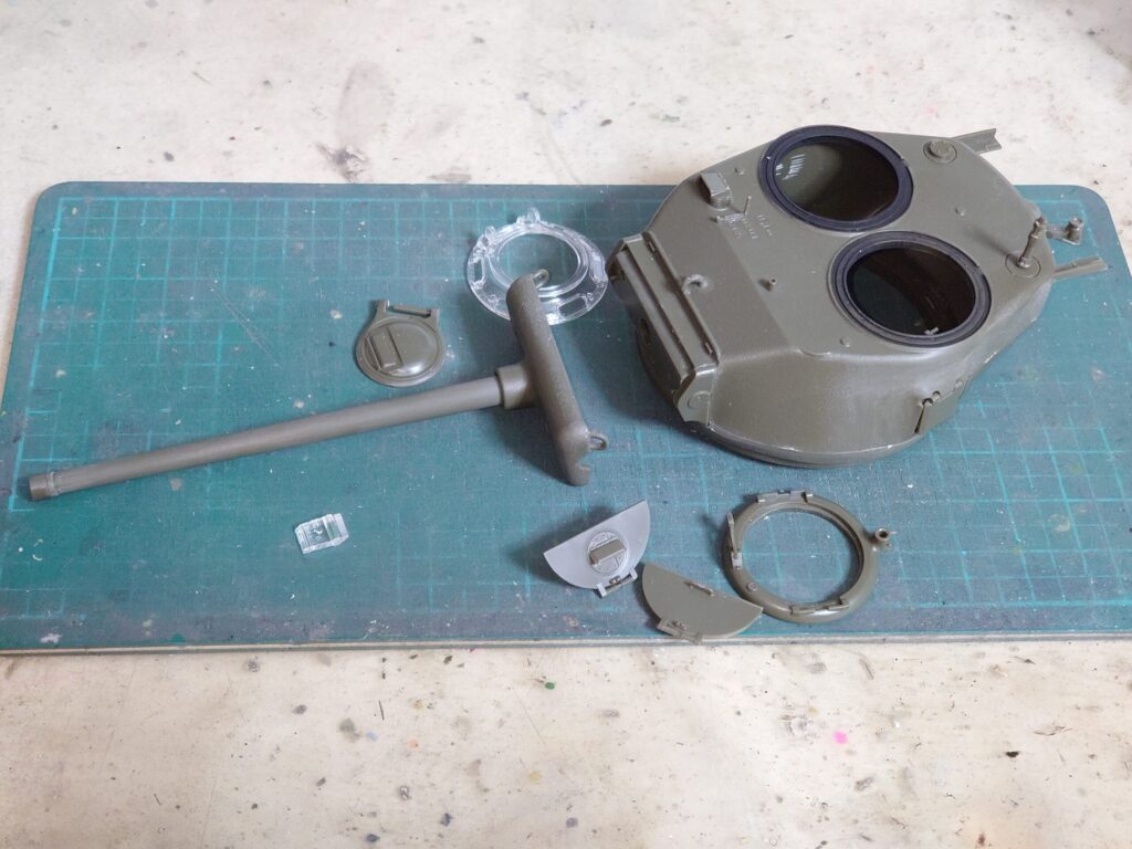 ハッチなどは接着せずに仮留めして、砲塔の組み立てを終えましょう。