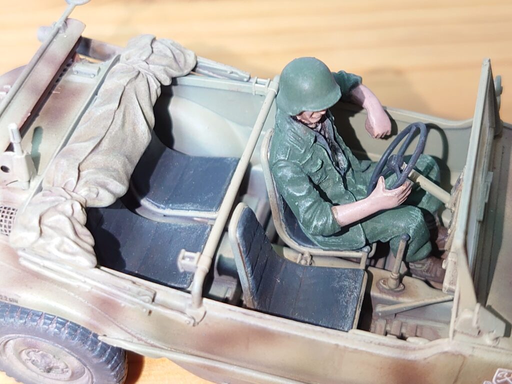 - 運転手の兵士がピッタリサイズなので、先に運転席周りの部品を全て組むと乗せにくくなる。ハンドルなどは完成直前まで接着しないなどして進めるのがおススメ