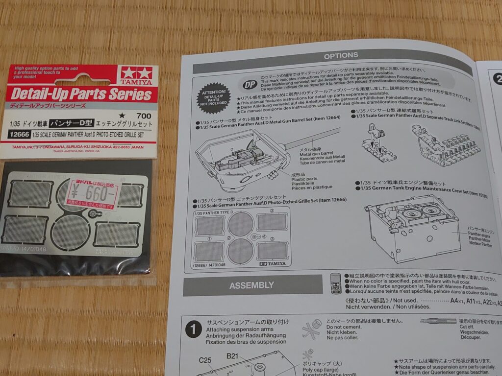 ともかく、エッチンググリルのみを追加して、タミヤのパンターD型を組んでいく予定だ。