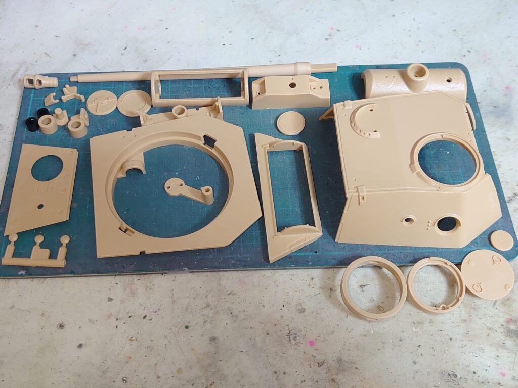 今回は残る砲塔を組んで大まかな形にしてから、一度内部や奥まった部分を塗ってみよう。