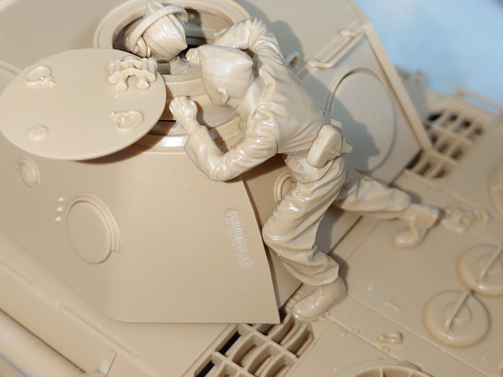 もう一人は車外の砲塔後部にしがみつき、双眼鏡で偵察を行う兵士ですな。