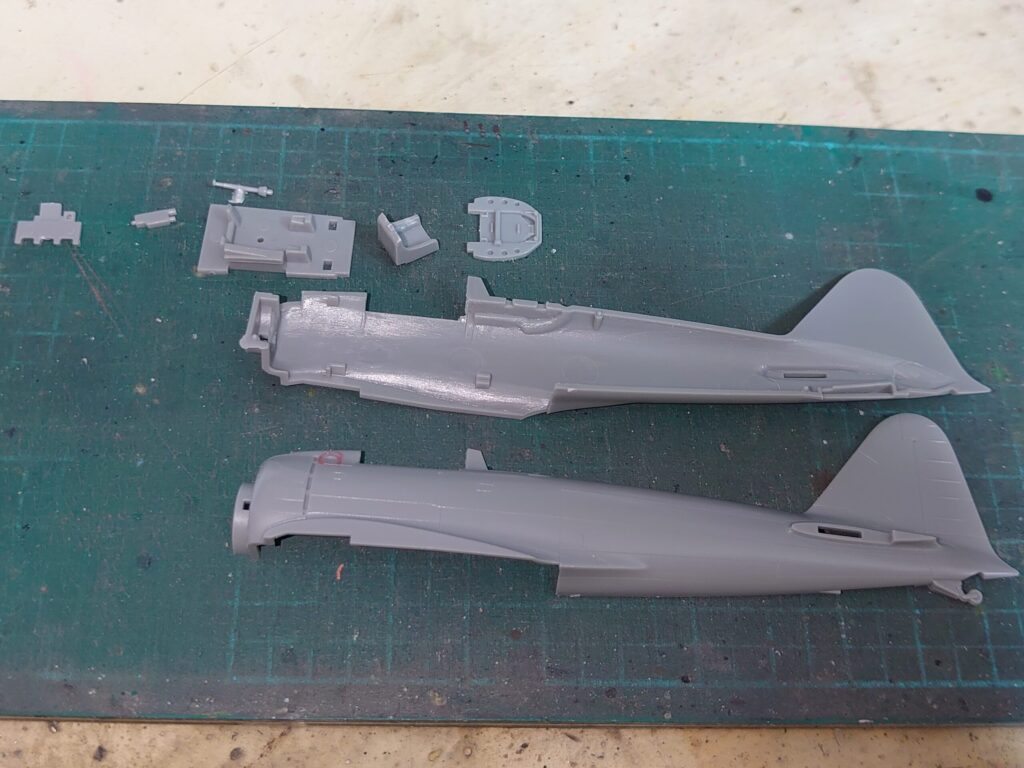 このキット、新規パーツである主翼周りと従来パーツである胴体の噛み合わせが少し悪かった。