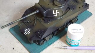 アドルフ タスカモデリズモ(現アスカモデル)より発売されています、M4A3シャーマンの76mm砲搭載型を作っていきましょう。 ヴァルダ 前回は塗装と手描きマーキングを行い、キットには収録されていないドイツ軍の鹵獲車輌に仕上げた。 今回は仕上...