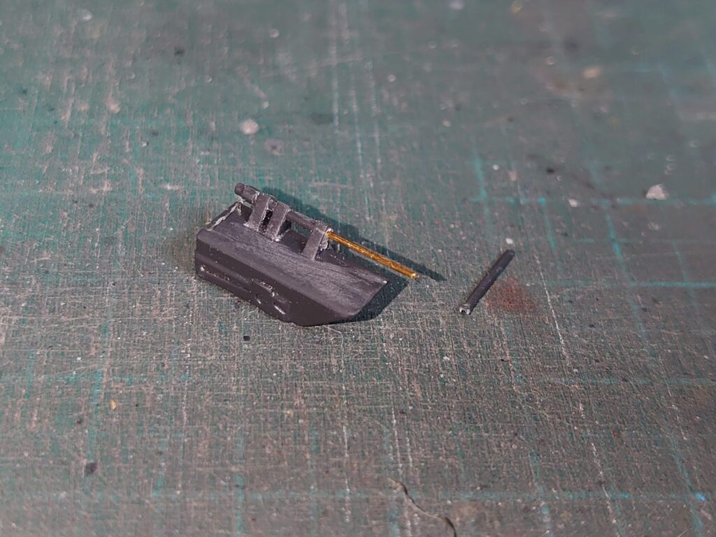 今回参考にしたガンダムウェポンズに掲載されていた作例でも真鍮線に置き換えていたので、筆者もそれに倣い真鍮線に置き換えている。
