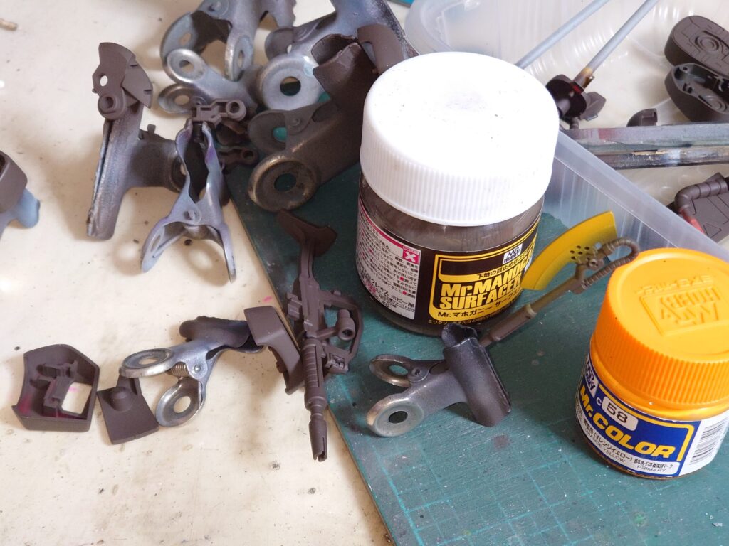 今回のキットだと頭部の口のダクト周りとか、二の腕部分、銃口・砲口辺りが該当する。