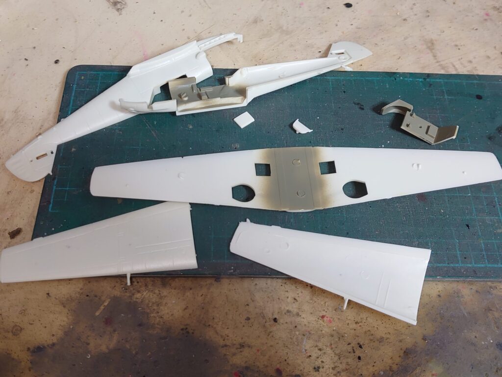 まずは主翼や胴体、コクピットの部品を切り出し。
