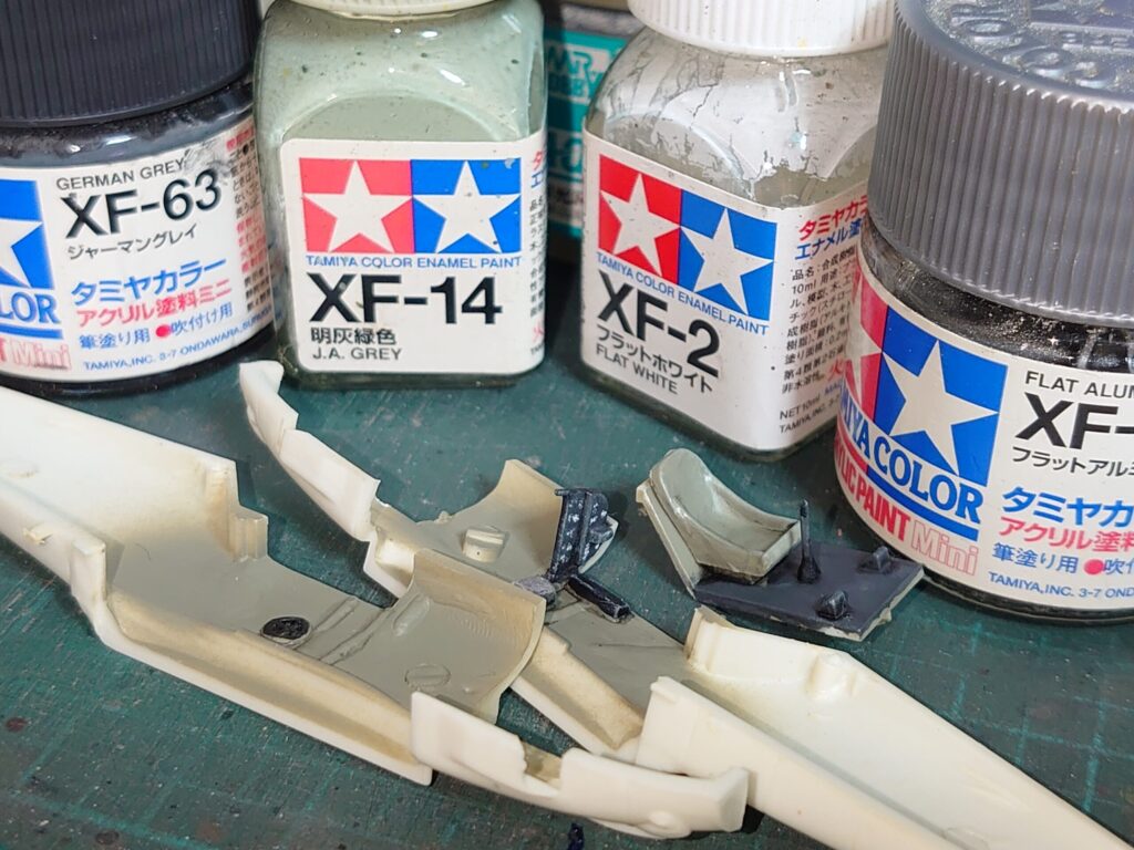 部品を切り出してゲート跡部分のRLM02グレーは筆でレタッチ。
