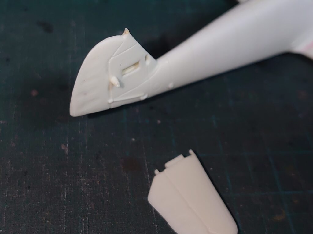 ……尾翼周りは他の取り付け穴もバリなどで歪んでいるのか、そのままではうまく入らなかった。
