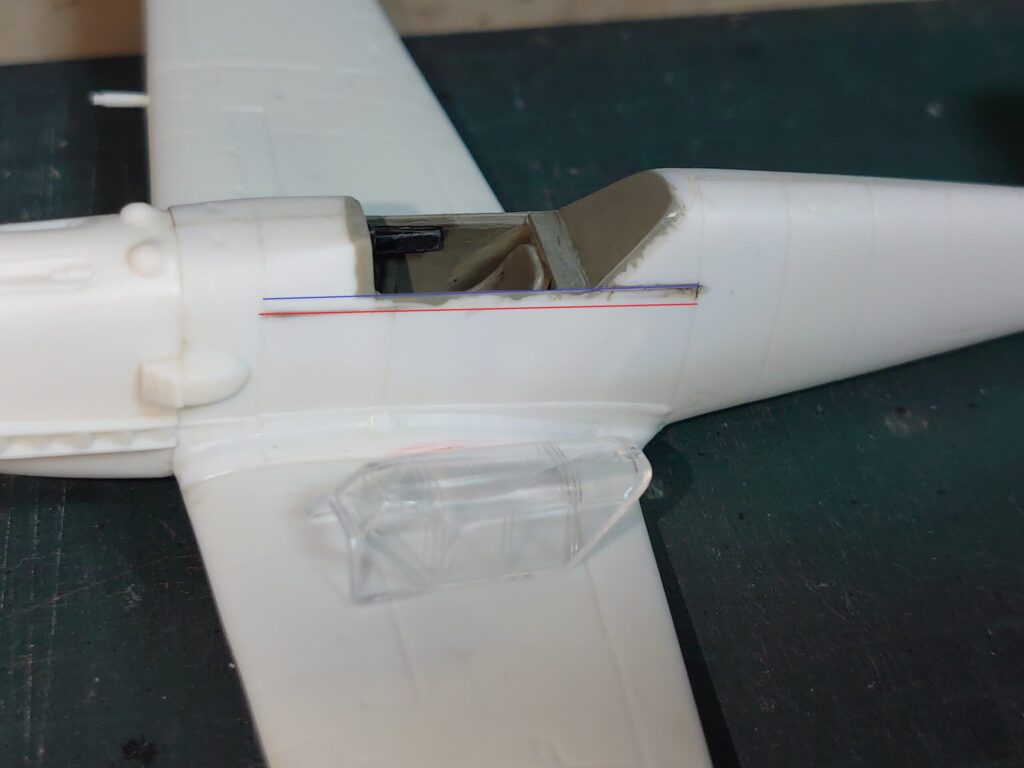上の画像の赤い線がキットの元々のモールドで、今の作業で埋めたもの。