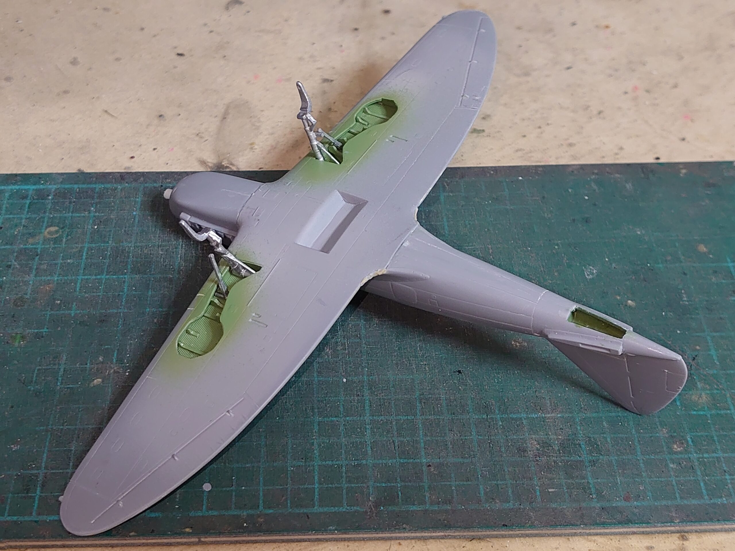 主脚格納部を貫通する機銃部分は後付けできそうなので、ここは後回しだけどね。