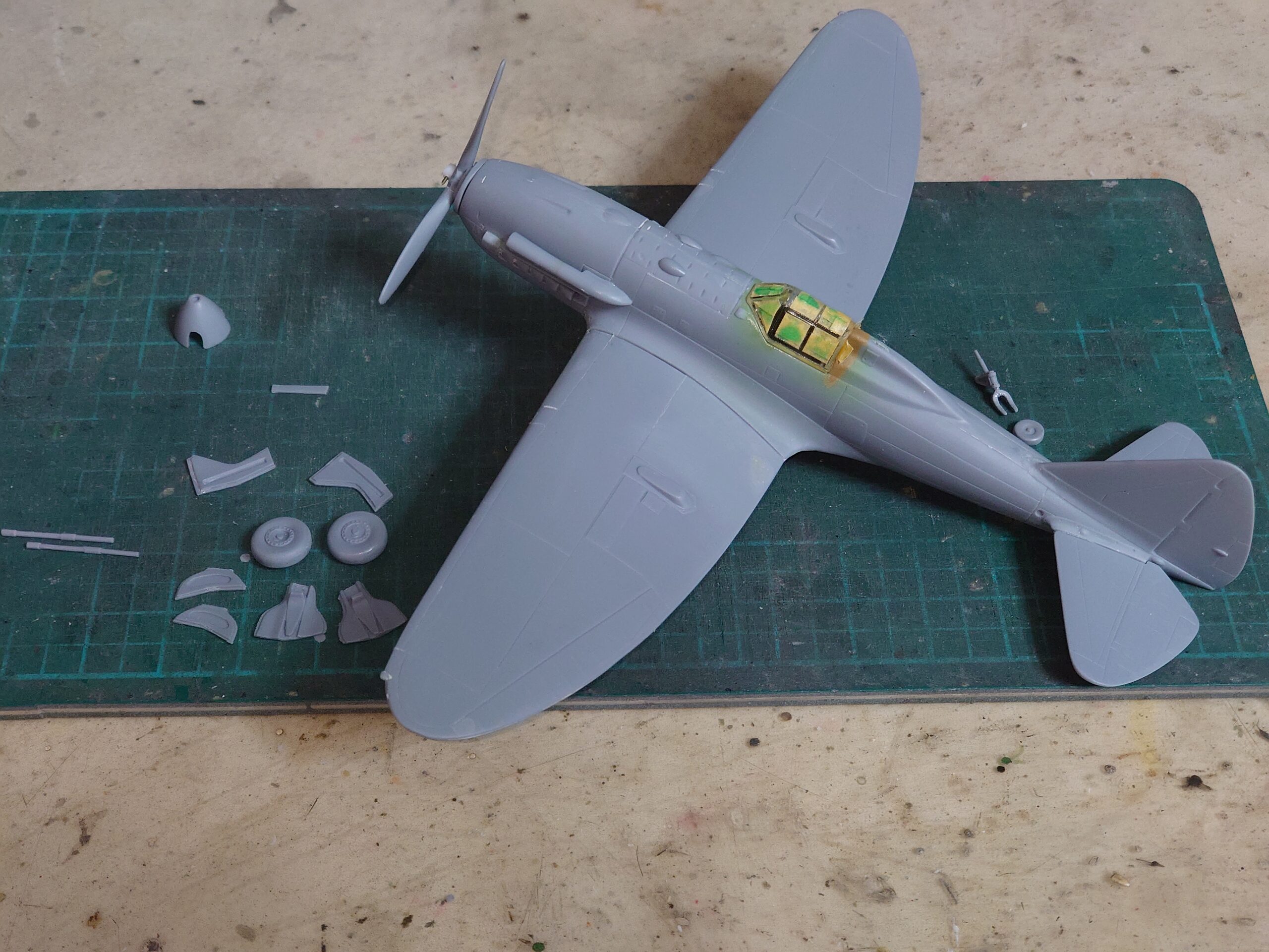 尾翼の他に尾輪格納部分のカバーや下面のラジエーターも取り付け。