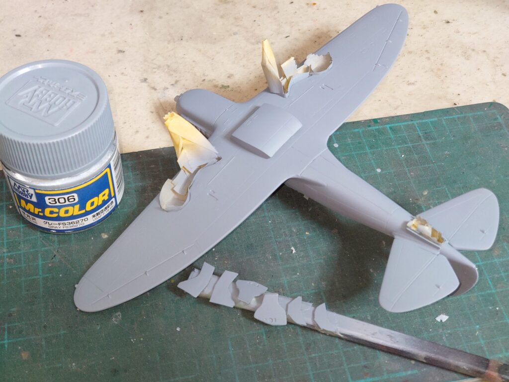 - 全体の下塗り→クレオスのMr.サーフェイサー1000