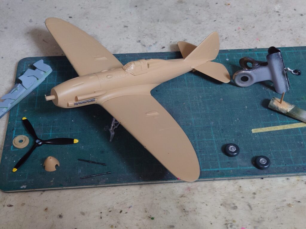 その後は筆でタイヤやプロペラなどの細かい部分を塗り分け。